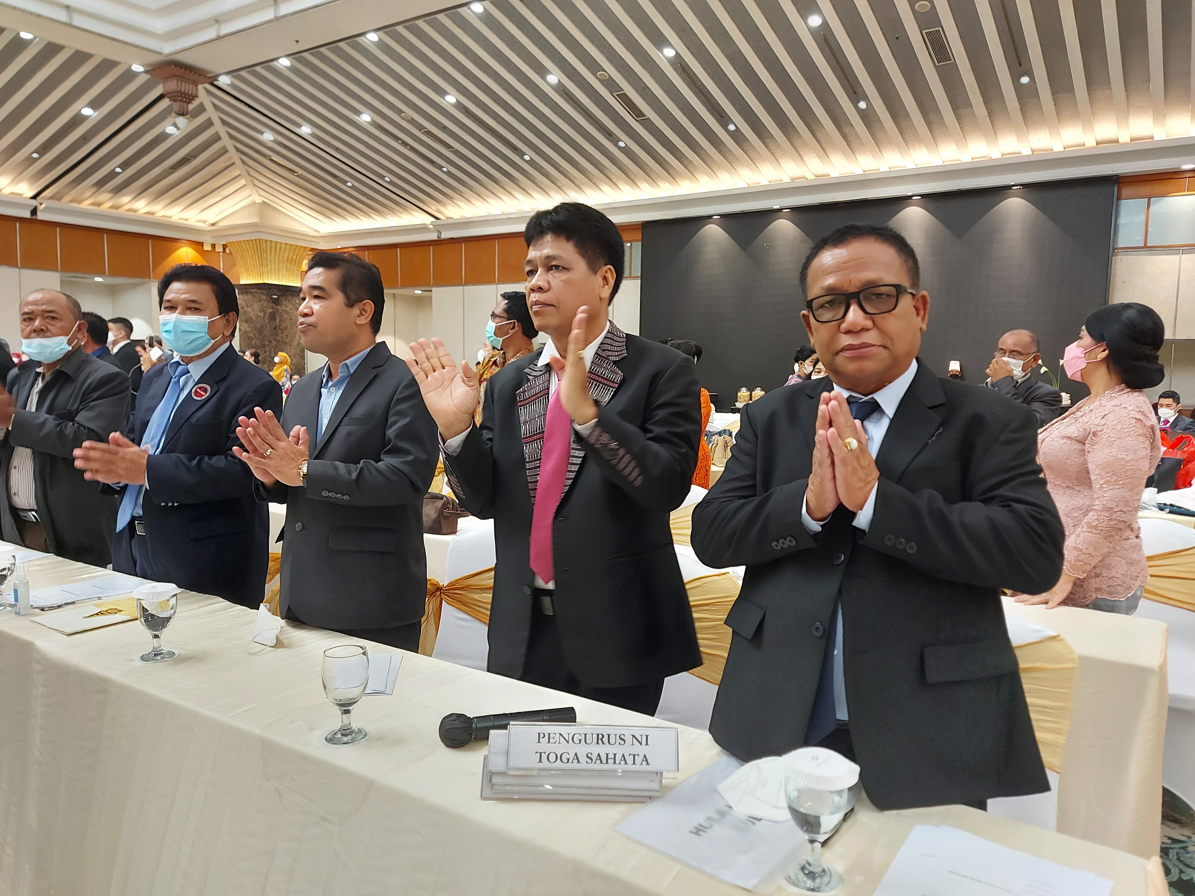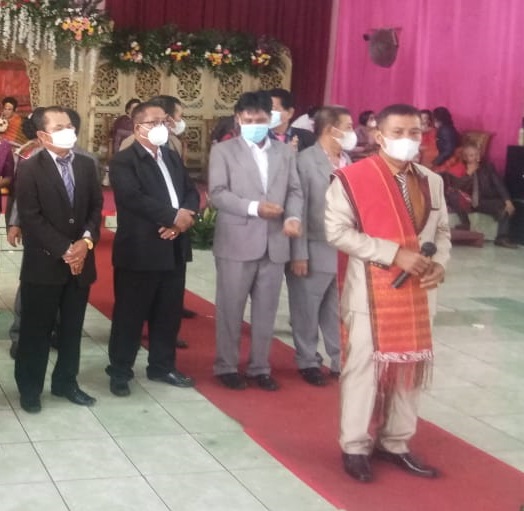 Pengawas dan Ketua Punguan Ompu Ronggur Nainggolan Lumban Raja dohot Boru tampak berdiri berdampingan dalam menghadiri / melaksanakan rangkaian ulaon Pesta....